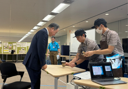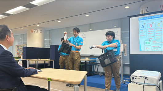 当日は、そらりの7つのチームがそれぞれの業務内容を紹介しました。短い持ち時間の中で、日々の取り組みや工夫を伝えるために、各チームがアイデアを凝らした発表を行い、五十嵐さんも熱心に耳を傾け、質問やコメントを交えながら交流を深めました。